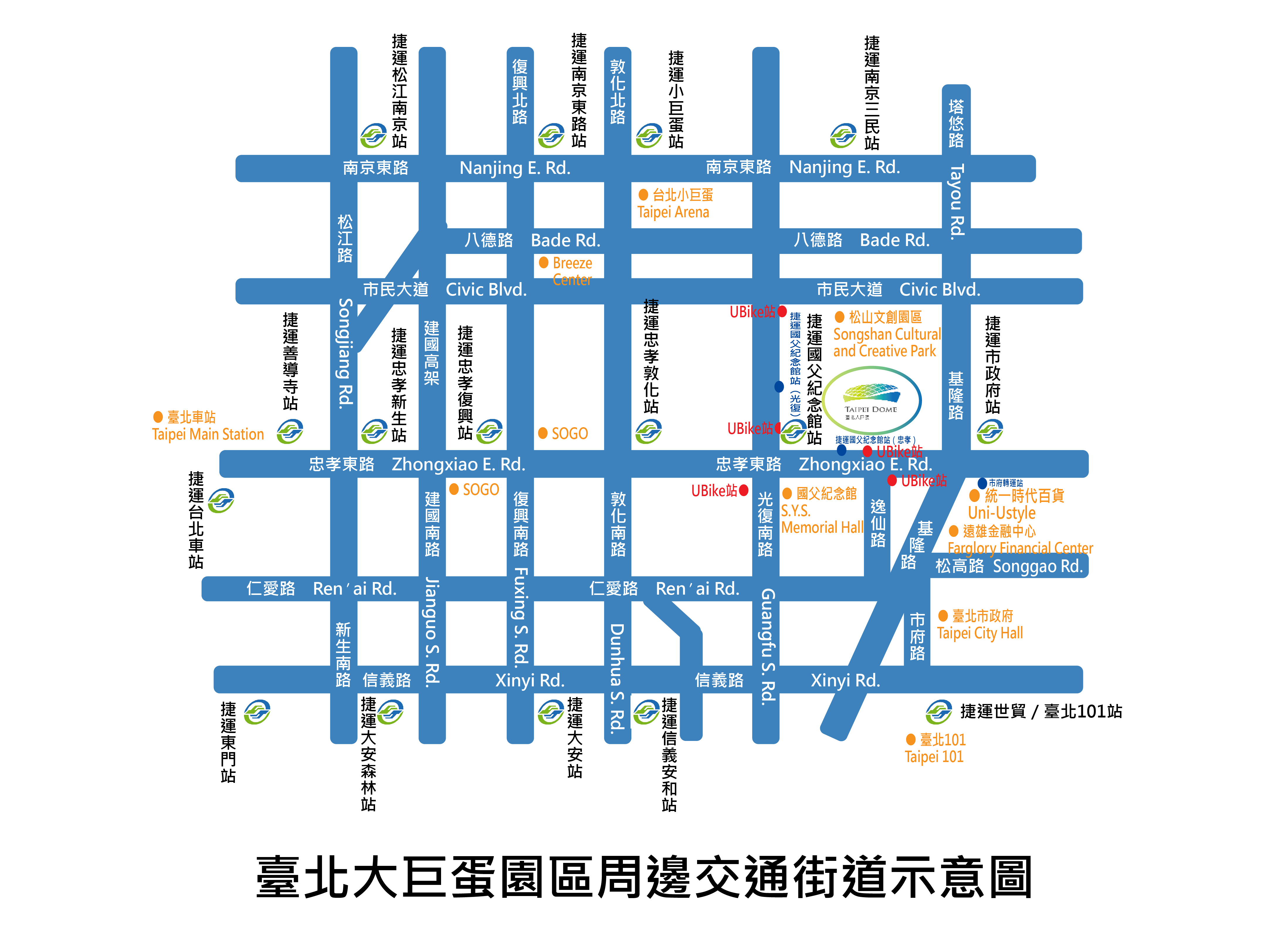臺北大巨蛋園區位居信義區黃金地段,得天獨厚的交通位置,不論是搭乘大眾運輸或自行駕車前往都十分便捷。